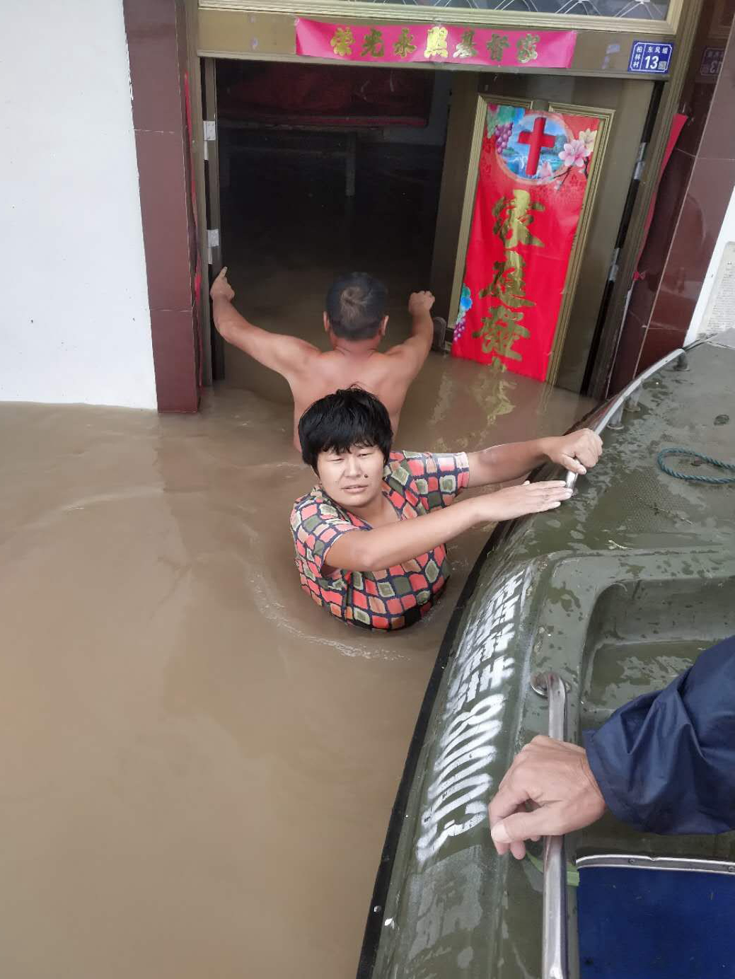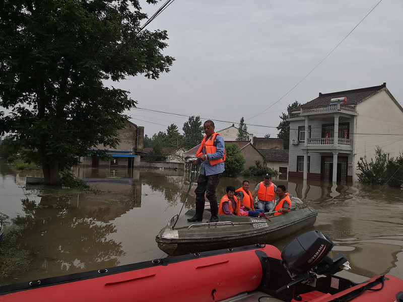 19日中午,惠國(guó)勝帶領(lǐng)一班人到達(dá)舒城縣百神廟鎮(zhèn)?;輫?guó)勝一到災(zāi)區(qū)現(xiàn)場(chǎng),顧不上休息立即加入到抗洪搶險(xiǎn)隊(duì)伍。此時(shí)的百神廟鎮(zhèn)舒房村、團(tuán)結(jié)村受災(zāi)最為嚴(yán)重,道路被淹沒,許多村民被洪水圍困,亟待救援和轉(zhuǎn)移?;輫?guó)勝會(huì)同當(dāng)?shù)劓?zhèn)政府及相關(guān)村兩委工作人員分析研判災(zāi)情,摸清被圍困人員的數(shù)量、位置等關(guān)鍵信息后,憑著過硬的船艇駕駛技術(shù),在村委負(fù)責(zé)人的指引下,全力轉(zhuǎn)移被困群眾。由于我縣洪水災(zāi)情兇猛,此時(shí)百神廟鎮(zhèn)的洪水水位還在不斷上漲。被圍困的群眾看到救援快艇到來(lái),人人喜出望外,為了安全并盡量更多更快的轉(zhuǎn)移受災(zāi)群眾,惠國(guó)勝與一名向?qū)?,往返轉(zhuǎn)移受災(zāi)群眾。有的留守老人被圍困在自家二樓上,惠國(guó)勝二話不說,跳入齊胸深的洪水中,爬上二樓,將老人背上船;有的老人不肯離開家園,惠國(guó)勝只好苦口婆心的一一勸說……19日下午到晚上(天黑后,安全起見不再開船),僅惠國(guó)勝一張快艇就往返轉(zhuǎn)移群眾近二十船次,轉(zhuǎn)移被圍困群眾二百多人。惠國(guó)勝渾身濕透,嗓子喊啞了,焦急的他始終不肯休息一次。鎮(zhèn)上領(lǐng)導(dǎo)和村里干部群眾看在眼里,佩服在心里,紛紛向在救災(zāi)現(xiàn)場(chǎng)組織指導(dǎo)的公司領(lǐng)導(dǎo)表達(dá)肯定和贊揚(yáng)。